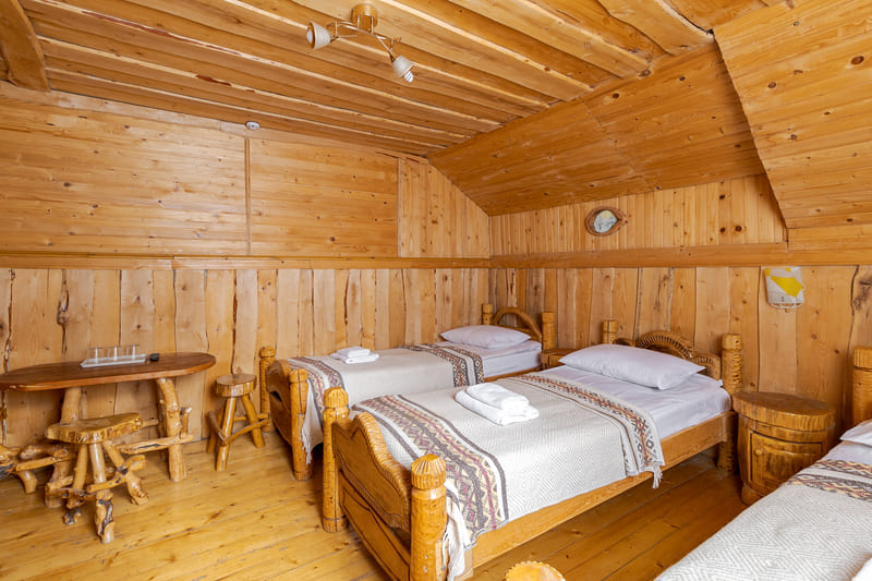 - Сімейний двокімнатний мансардний п'ятимісний номер (до 5 осіб) - сніданок та вечеря, фен, постільна білизна, рушники,доступ до скі-рум