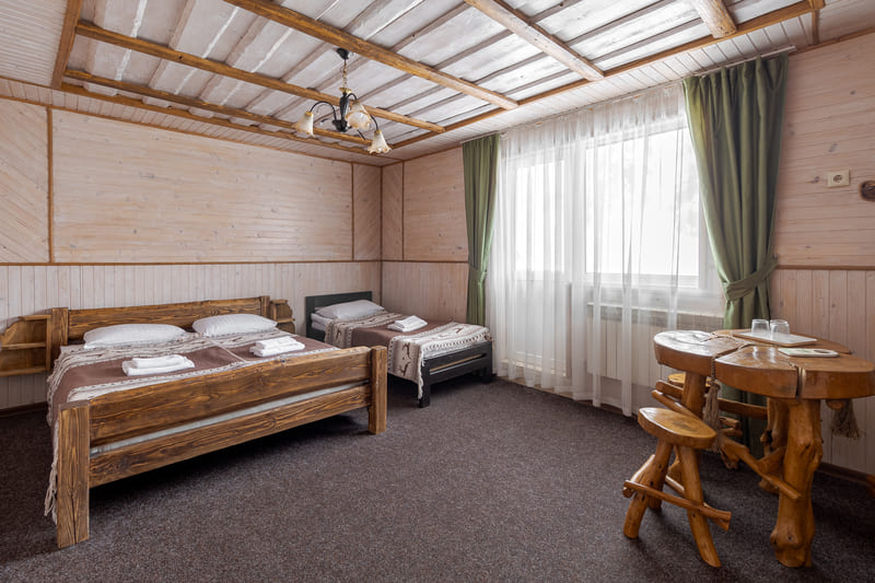 - Тримісний покращений (до 3х осіб) - сніданок та вечеря, фен, постільна білизна, рушники, доступ до скі-рум