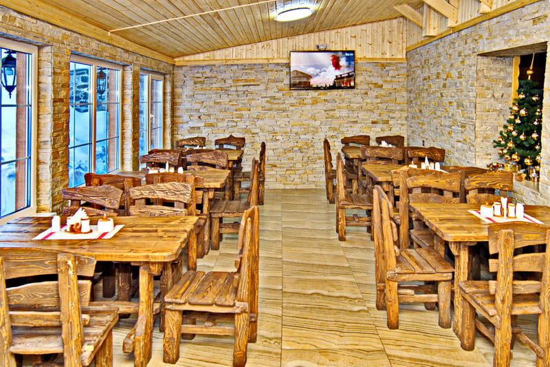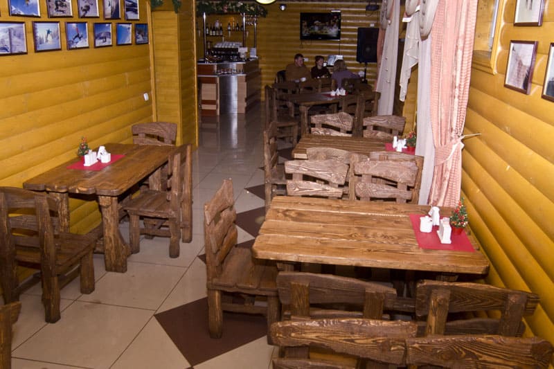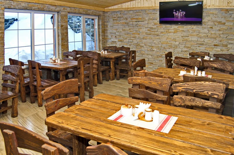 На великій відкритій сонячній терасі, разташованій на свіжому повітрі, сидячи на разкладному кріслі, можна спостерігати за лижниками, насолоджуюсь ароматом кави еспрессо, смачним фірмовим глінтвейном, чаєм, зібраним з карпатських трав.