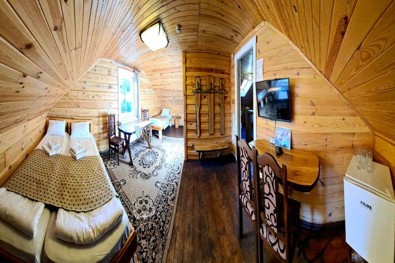 Вся будівля повністю виконана з дерева, дарує кожному гостю душевний комфорт та домашній затишок. Проживання у світлих та теплих номерах буде зручним як для компанії друзів (до 5 осіб у номері), так і для сімейних пар, а обслуговуючий персонал докладе всіх зусиль, щоб допомогти Вам організувати Ваш відпочинок як найкраще.