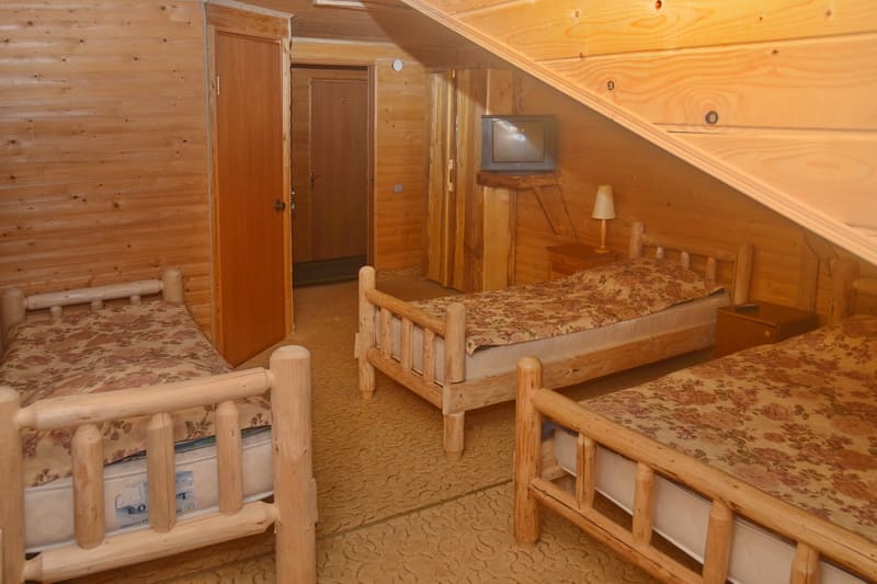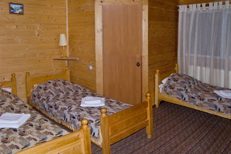 На першому поверсі розміщені бар, ресторан на 70 місць, прокат лиж.