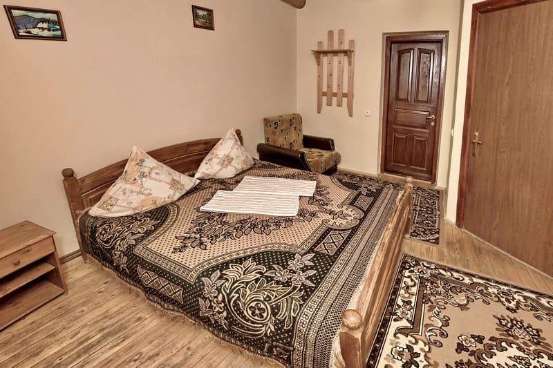 В номерах передбачено абсолютно все, що може знадобитися для повноцінного проживання декільком людям: два односпальні ліжка, шафа, ванна кімната і санвузол, баня, приладдя і білизна, телевізор, кабельні канали, опалення, Wi-Fi інтернет.