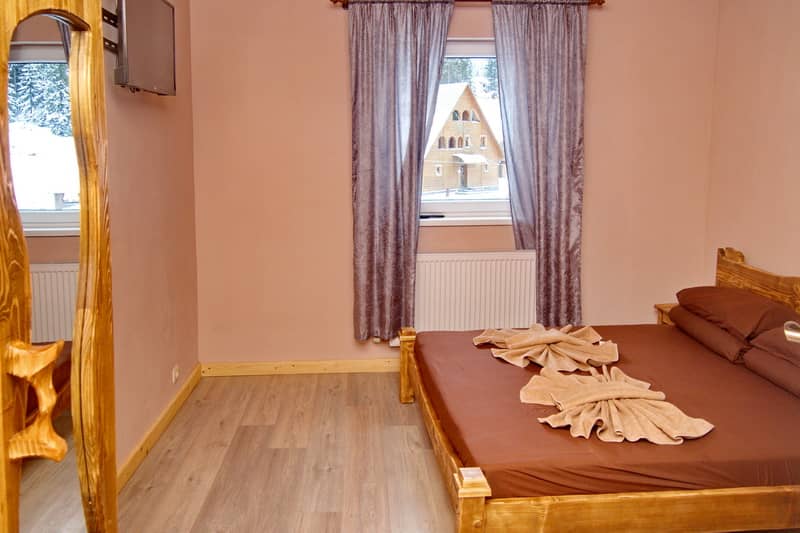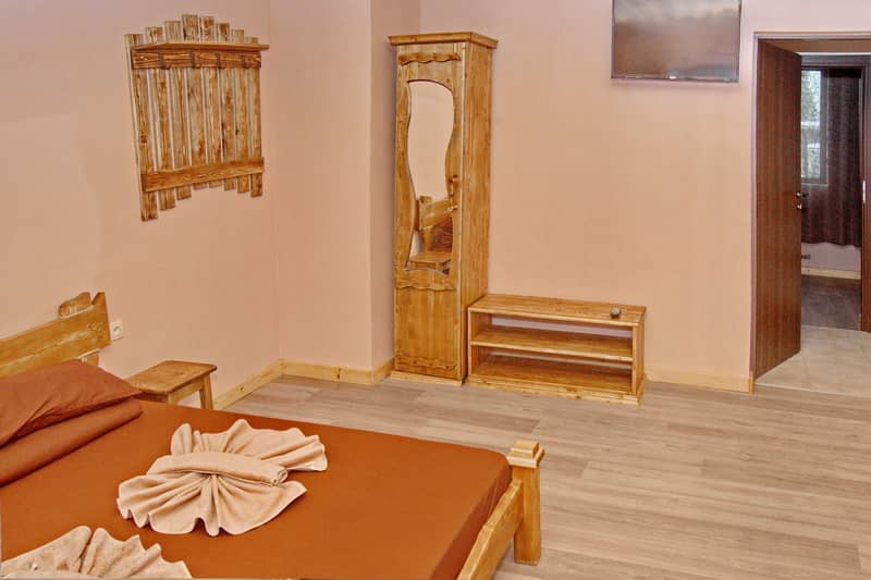 В номерах передбачено абсолютно все, що може знадобитися для повноцінного проживання декільком людям: два односпальні ліжка, шафа, ванна кімната і санвузол, баня, приладдя і білизна, телевізор, кабельні канали, опалення, Wi-Fi інтернет.