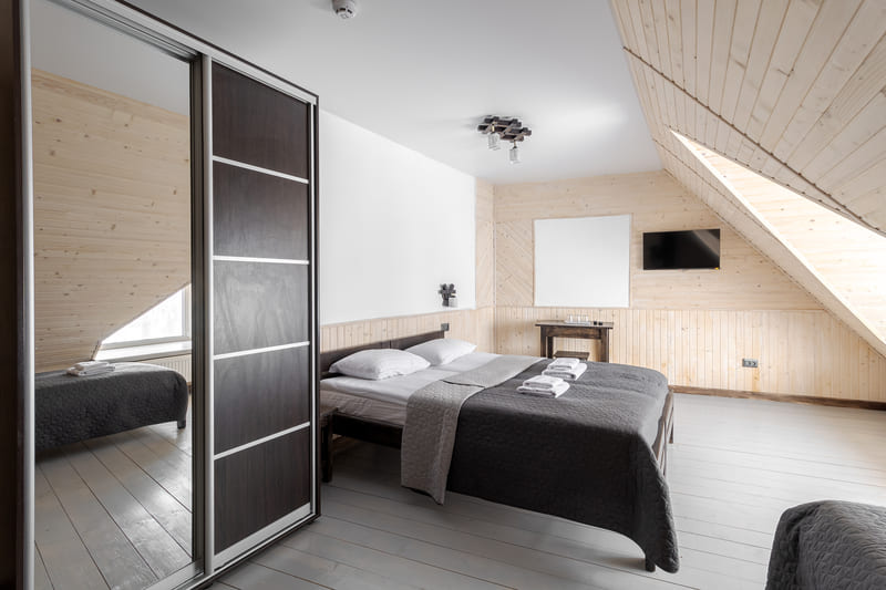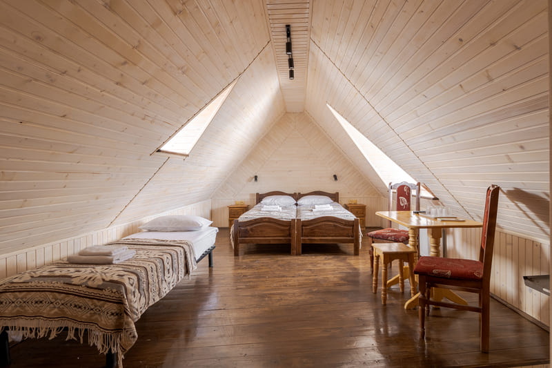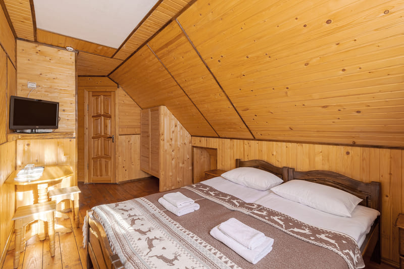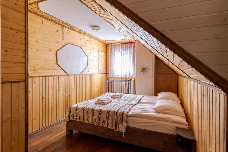 - Сімейний двокімнатний мансардний п'ятимісний номер (до 5 осіб) - сніданок та вечеря, фен, постільна білизна, рушники,доступ до скі-рум