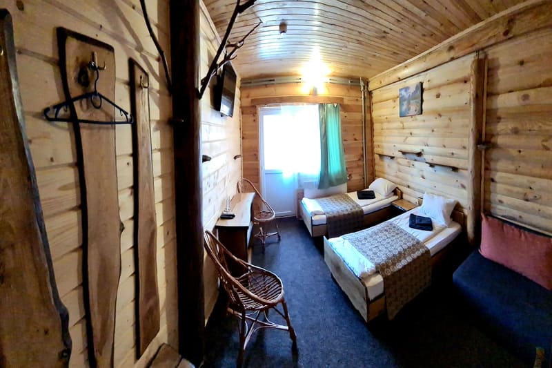 Покращений двомісний номер з балконом (однокімнатний, 2-місний номер, загальна площа - 24 м. кв.) - 2 односпальні ліжка або двоспальне ліжко, авторські меблі та дизайн, супутникове ТБ, Wi Fi, панорамний балкон, санвузол (душова кабіна, унітаз, умивальник, кількість рушників – 2 на особу).