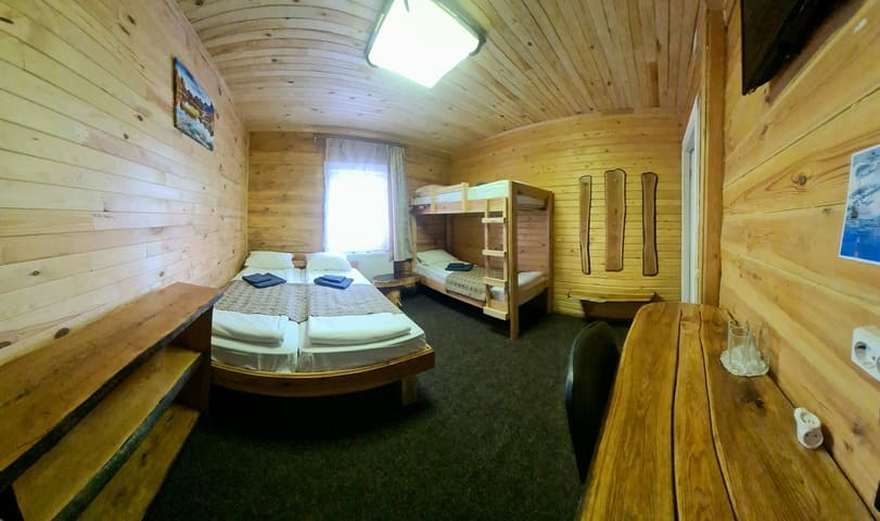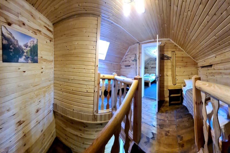 Вся будівля повністю виконана з дерева, дарує кожному гостю душевний комфорт та домашній затишок. Проживання у світлих та теплих номерах буде зручним як для компанії друзів (до 5 осіб у номері), так і для сімейних пар, а обслуговуючий персонал докладе всіх зусиль, щоб допомогти Вам організувати Ваш відпочинок як найкраще.