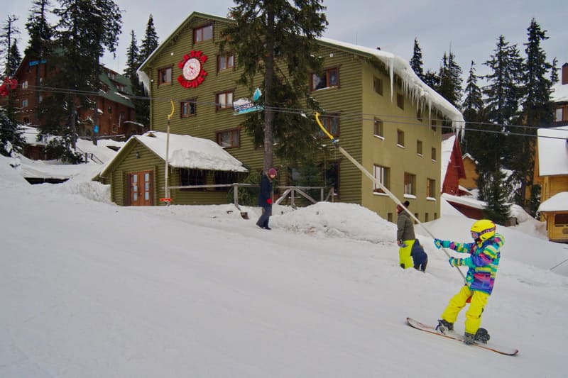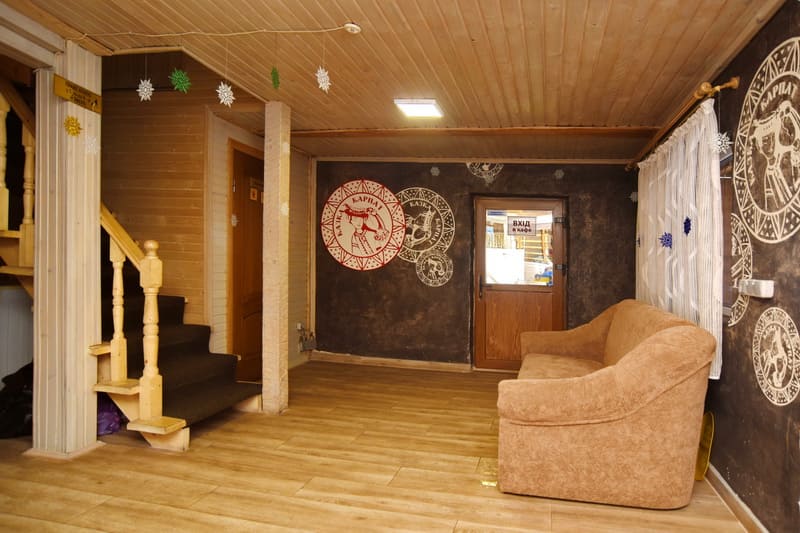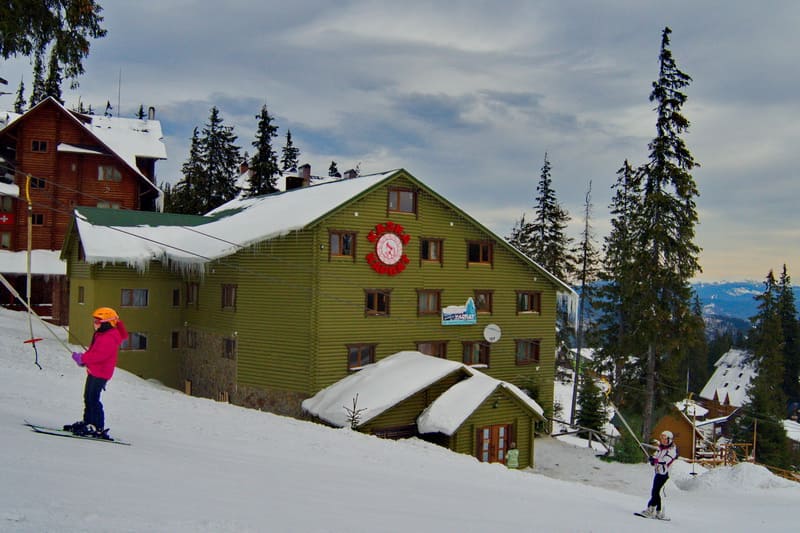 На першому поверсі розміщені бар, ресторан на 70 місць, прокат лиж.