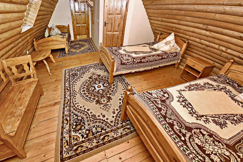 В номерах передбачено абсолютно все, що може знадобитися для повноцінного проживання декільком людям: два односпальні ліжка, шафа, ванна кімната і санвузол, баня, приладдя і білизна, телевізор, кабельні канали, опалення, Wi-Fi інтернет.