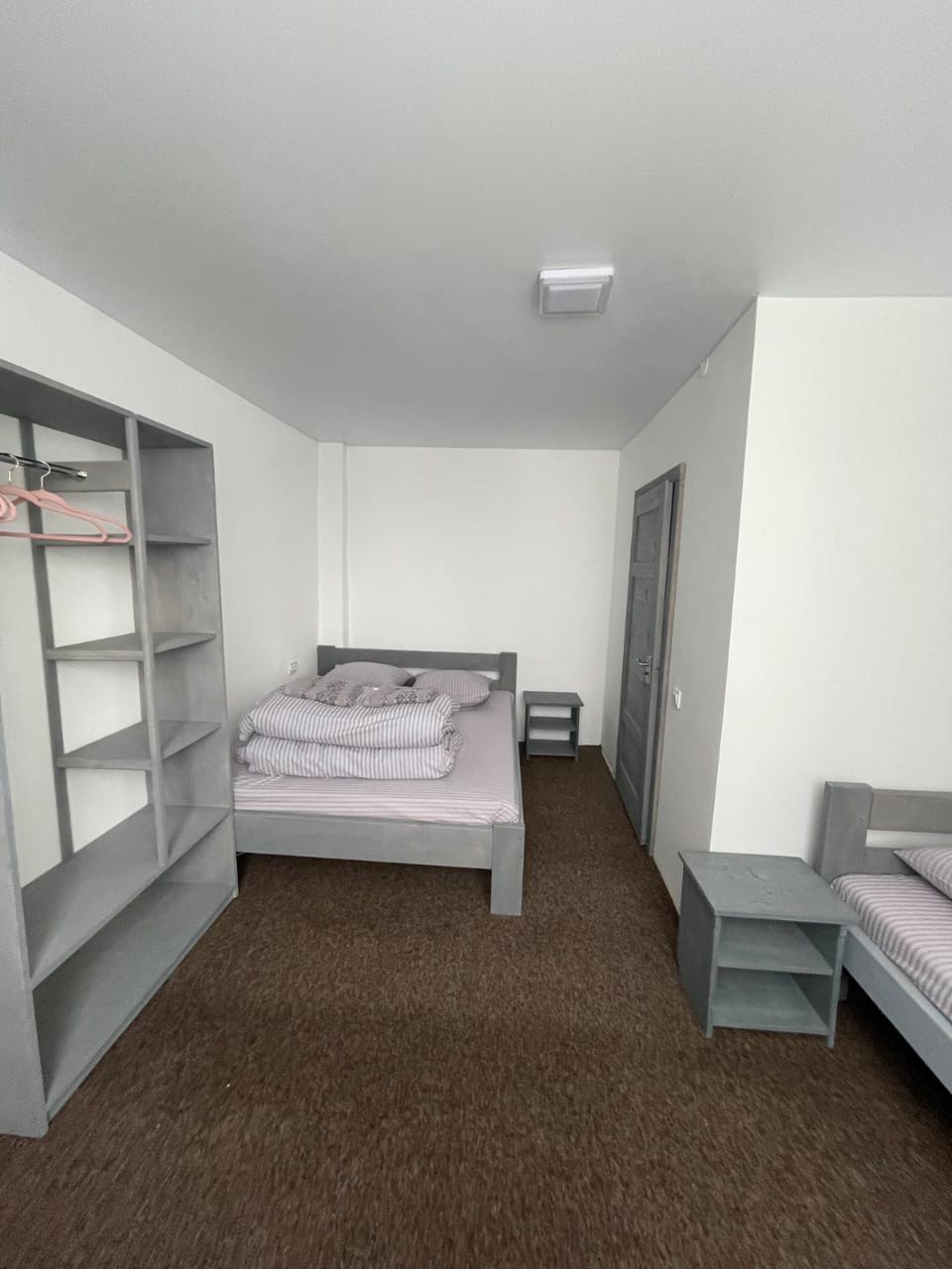 4-місний (однокімнатний, 4-місний номер, загальна площа – 18 м.кв.) двоспальне ліжко + 2 односпальні ліжка , ТБ, санвузол (душова кабіна, унітаз, умивальник.