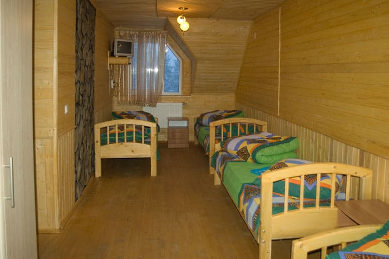 "4-місний" - 4 шт. : однокімнатний чотирьохмісний номер (21 кв. м), чотири односпальних ліжка, супутникове ТБ, санвузол (душова, унітаз, умивальник)