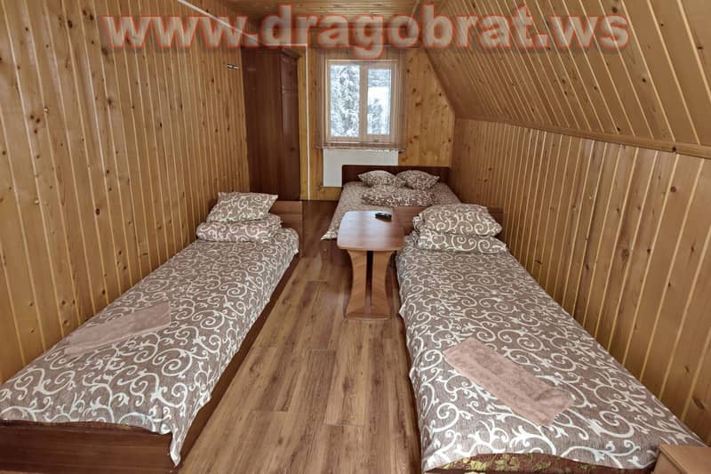 "3-місний" - 6 шт. : однокімнатний трьохмісний номер (19 кв. м), три односпальних ліжка чи двоспальне плюс односпальне ліжко, супутникове ТБ, санвузол (душова, унітаз, умивальник)