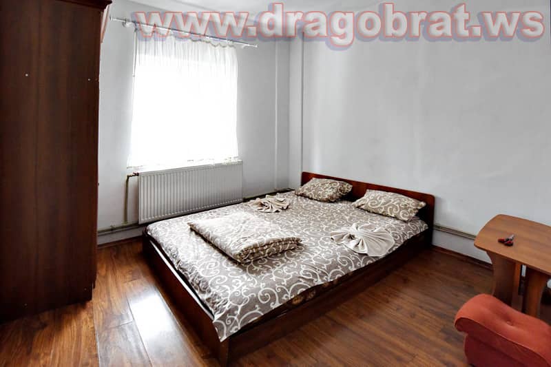 Апартаменти: "Люкс" - 4 шт. : двокімнатний двомісний номер (32 кв. м), двоспальне ліжко, супутникове ТБ, м'яка частина, санвузол (душова, унітаз, умивальник).