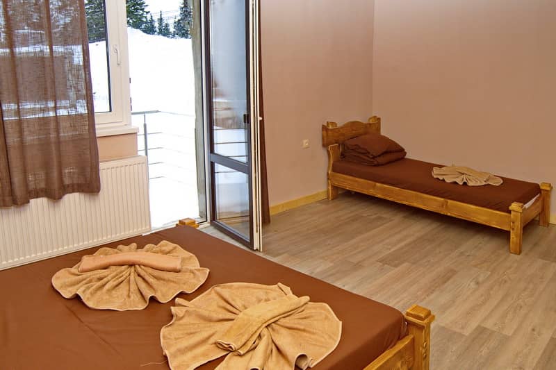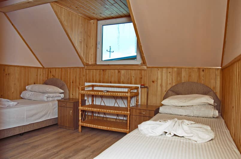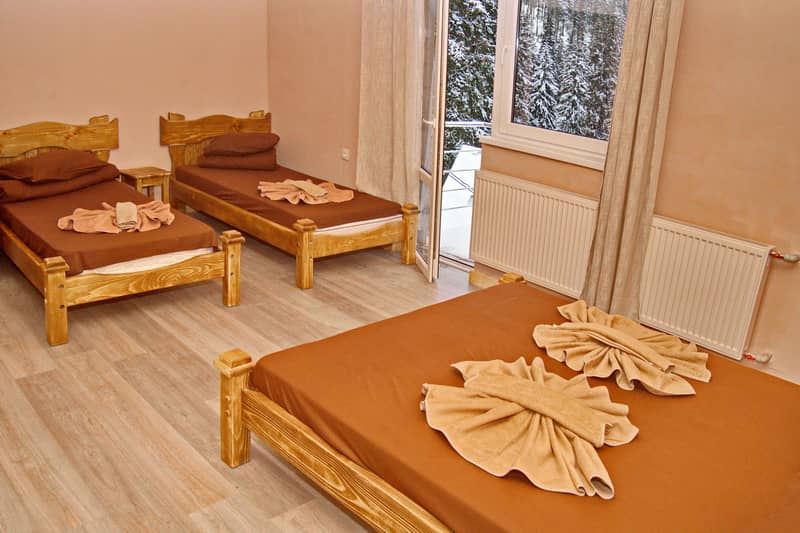 В номерах передбачено абсолютно все, що може знадобитися для повноцінного проживання декільком людям: два односпальні ліжка, шафа, ванна кімната і санвузол, баня, приладдя і білизна, телевізор, кабельні канали, опалення, Wi-Fi інтернет.